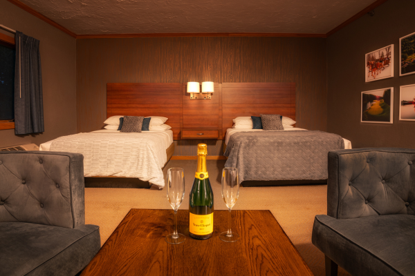 Treetops Lodge has rooms for parties of any size with a large indoor-outdoor heated pool. All rooms feature comfortable beds and spacious sleeping, lounge, and bathroom spaces.